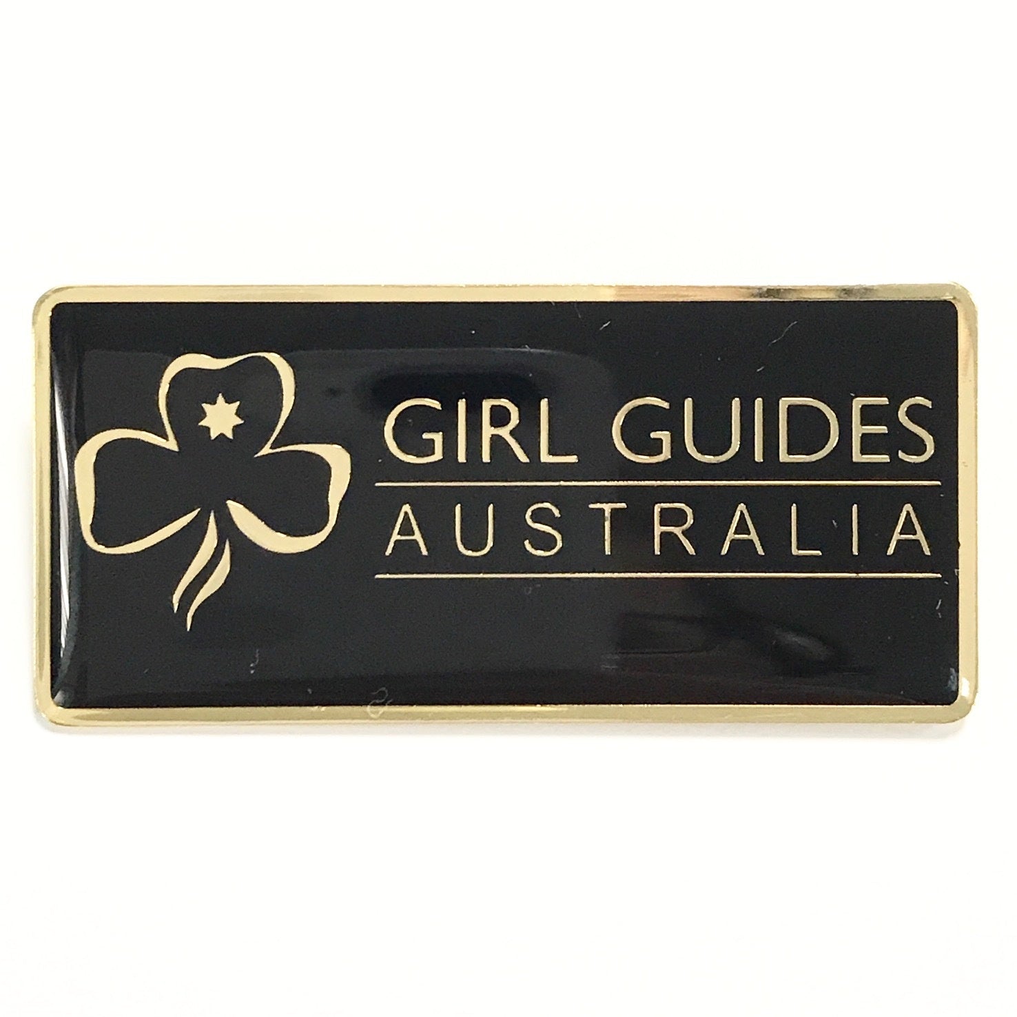 Metal sash pin used for holding together the bottom of the Girl Guide sash worn by youth members.
